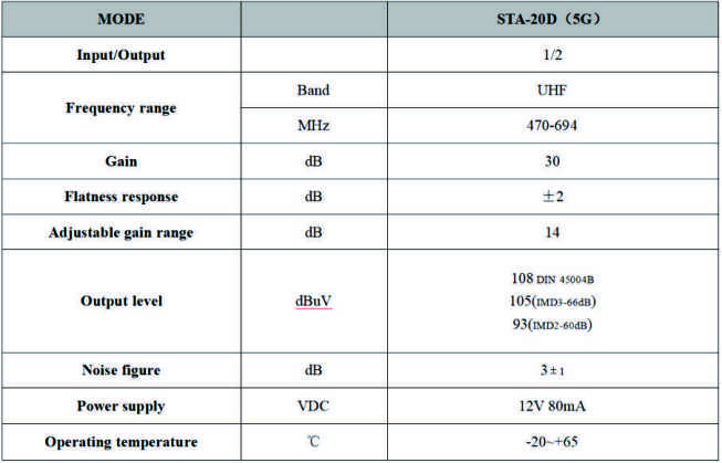 Suitable for amplifying, distributing, and transmitting outdoor UHF ground antenna signals;