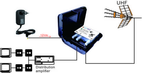 Suitable for amplifying, distributing, and transmitting outdoor UHF ground antenna signals;